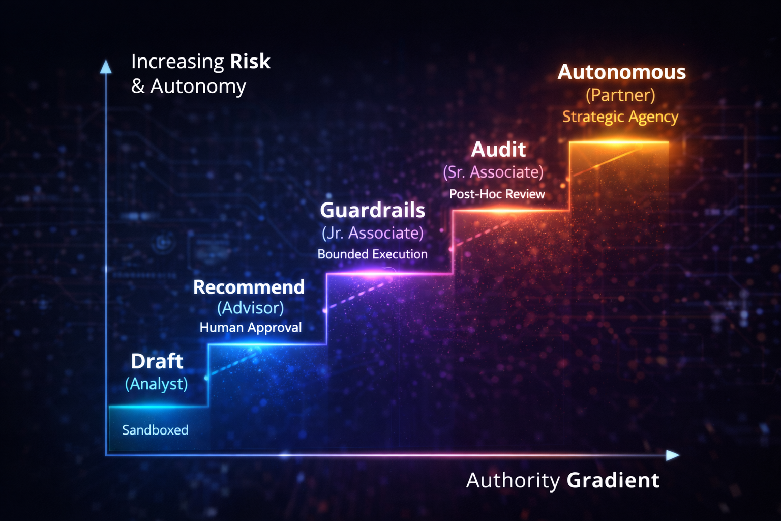 Most enterprise failures occur because organizations collapse this gradient entirely, jumping straight from sandboxed pilots to near-total autonomy. Authority without gradation is indistinguishable from recklessness.